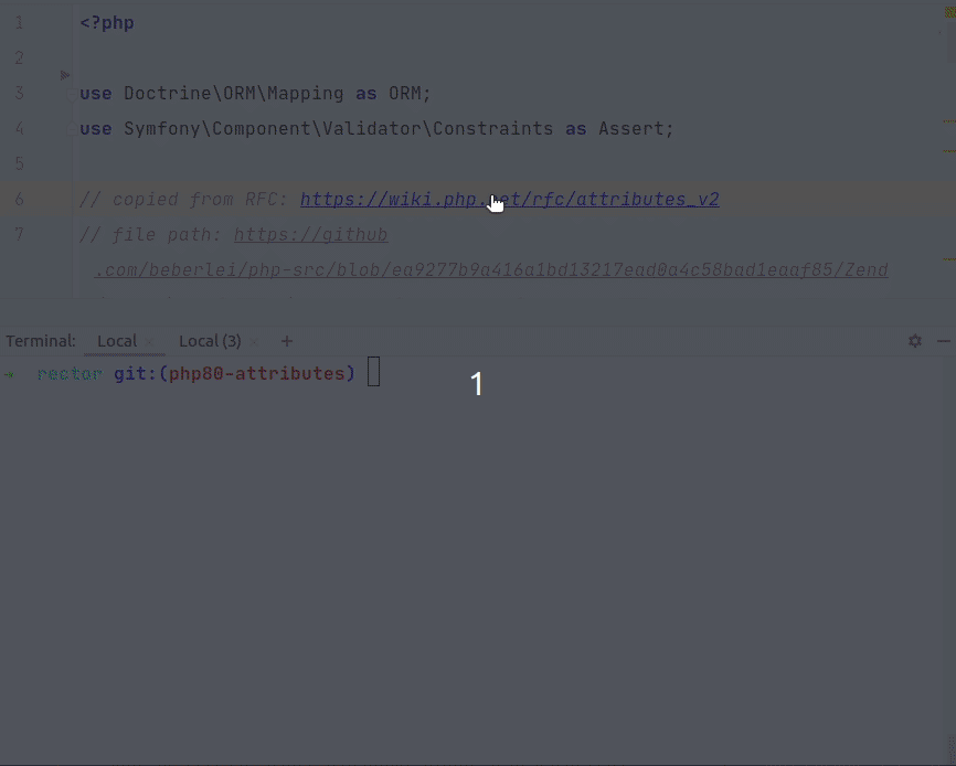 Source with Doctrine annotations to mimic: https://github.com/beberlei/php-src/blob/ea9277b9a416a1bd13217ead0a4c58bad1eaaf85/Zend/tests/attributes/009_doctrine_annotations_example.phpt