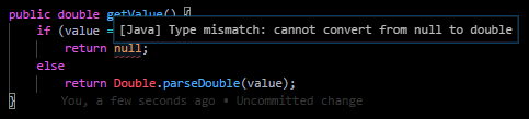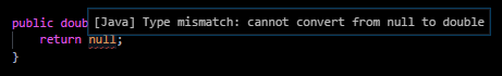 null is error-underlined with the error [Java] Type mismatch: cannot convert from null to double.