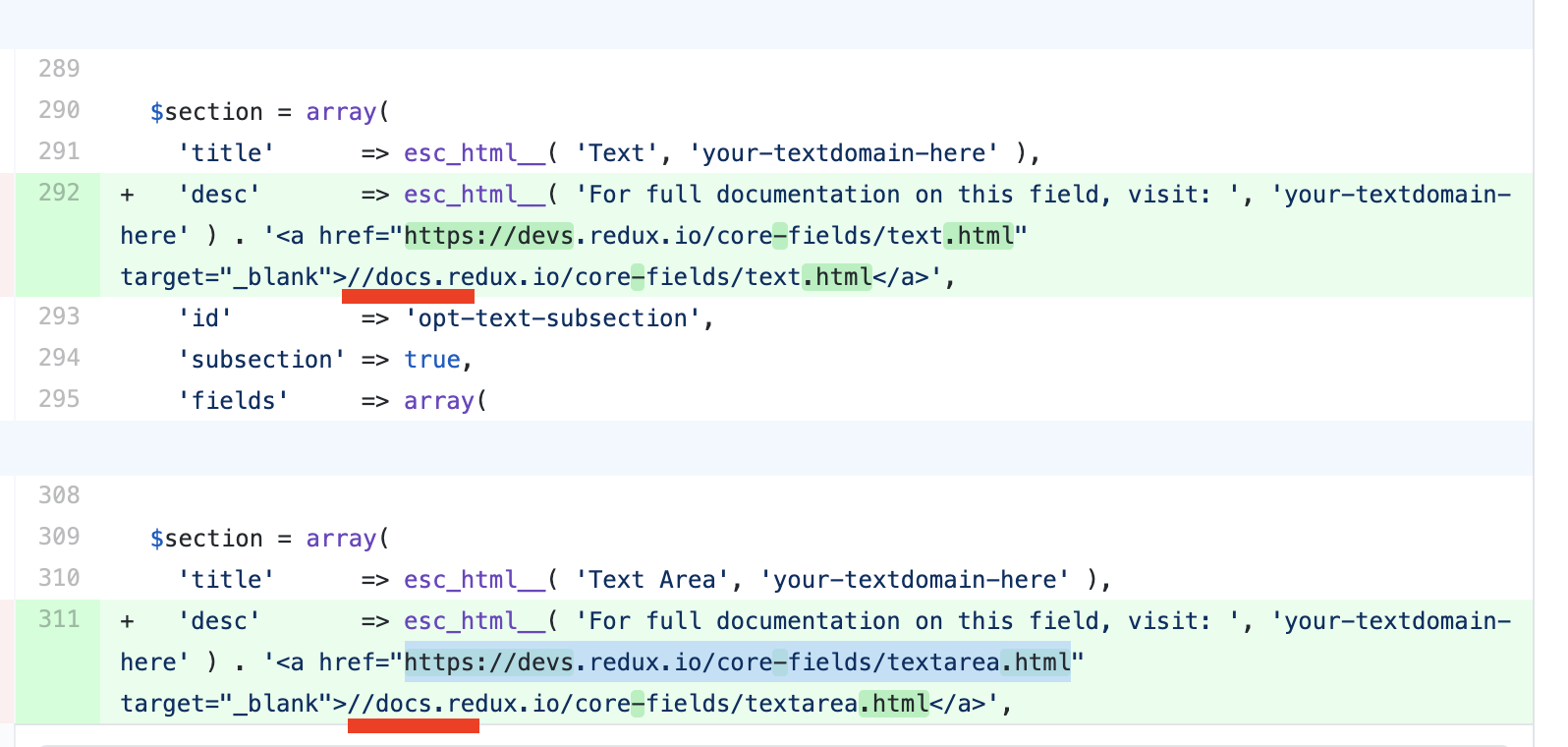| 'desc' => esc_html__( 'For full documentation on this field, visit: ', 'your-textdomain-here' ) . '<a href="https://devs.redux.io/core-fields/textarea.html" target="_blank">//docs.redux.io/core-fields/textarea.html</a>', |