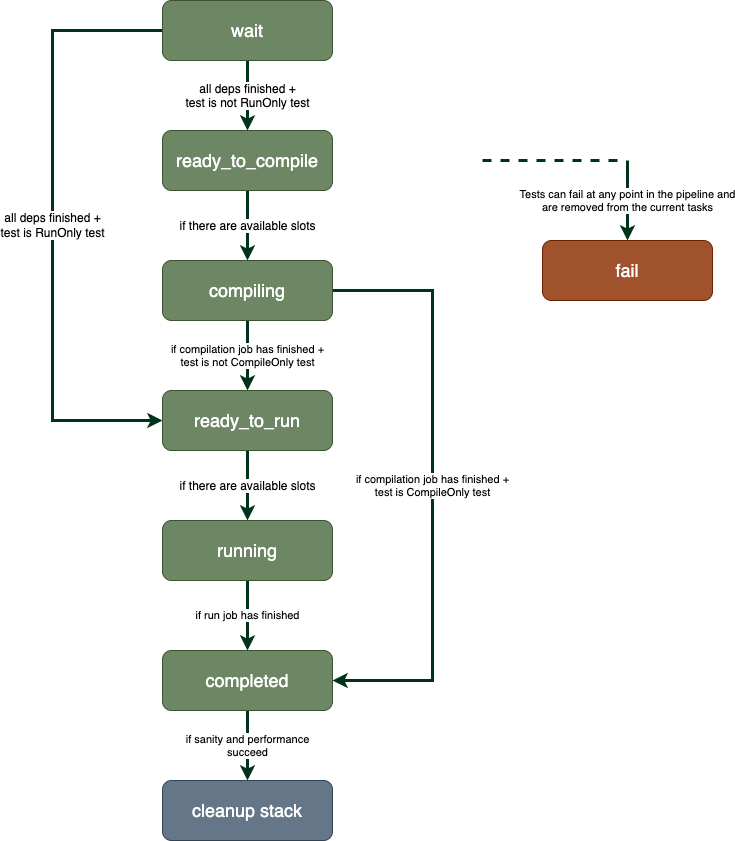 waitstage.current_tasksset) we go into a busy loop in which:current_tasksset (green stages) and try to advance them to the next stage.retiredstack.With the async building a new issue was created. By default ReFrame will build the test locally (and not in the partition). So the