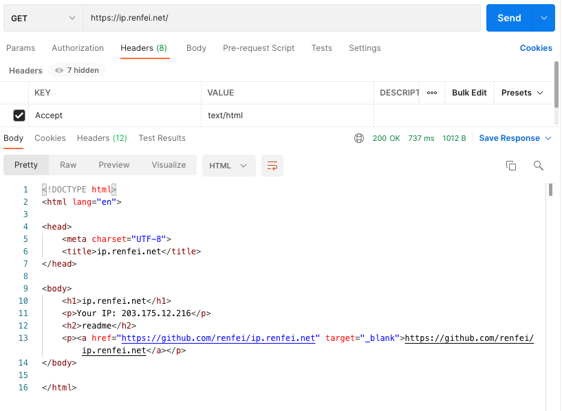 Accept为:text/html、application/xhtml+xml,你将得到下面的响应结果:IP 地址在变化