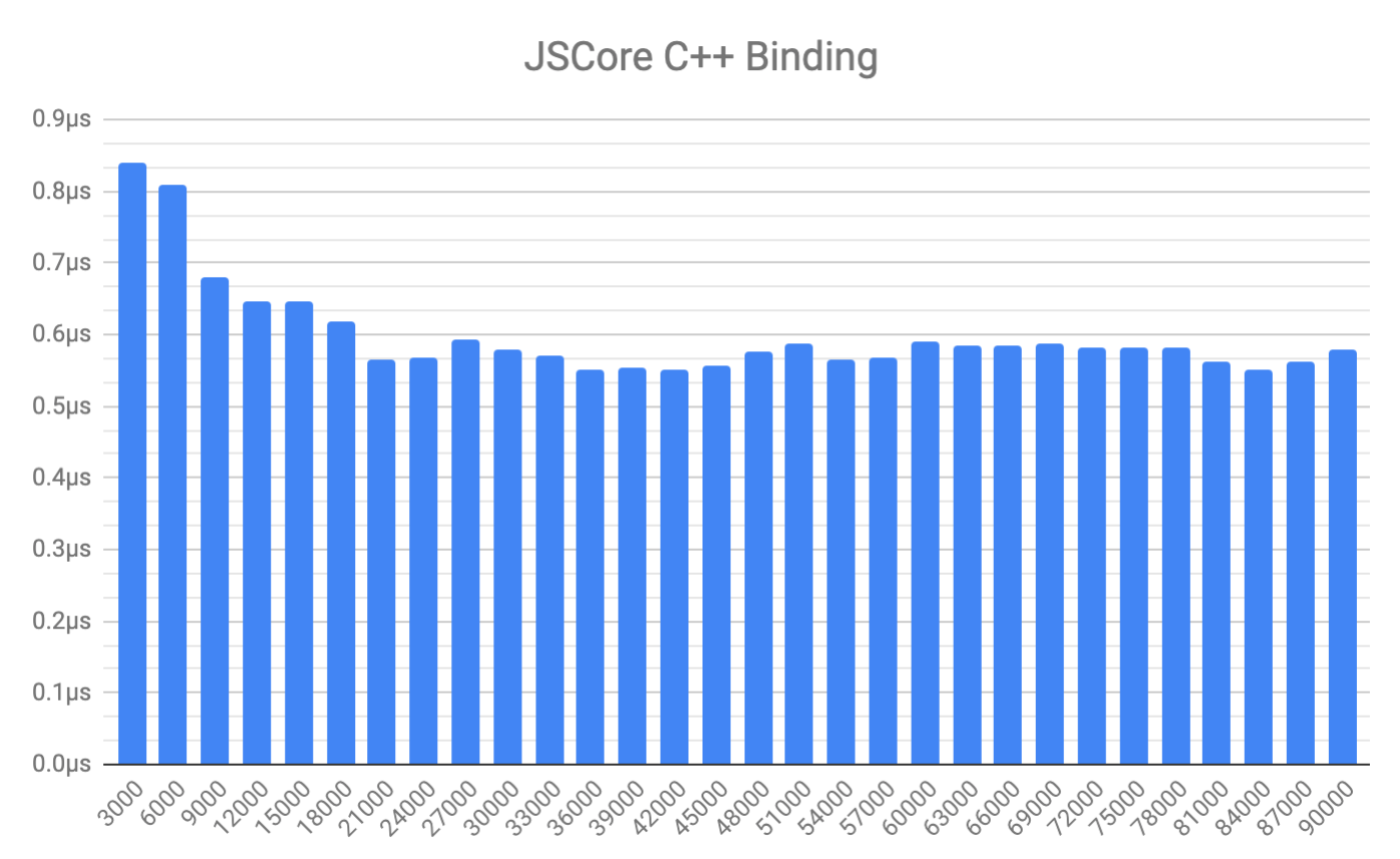 对于 iOS 来说,JavaScriptCore (后称 JSCore )是 Apple 钦定的 JS 引擎,其实除了 JSCore,iOS 上也可以跑其他 JS 引擎,比如 ChakraCore 以及 Firefox 的 SpiderMonkey,理论上只要是支持解释器模式的JS引擎都有机会可以运行在 iOS 系统上。刚好最近 V8 也支持了解释器模式(JITless) ,今天正好来看看 V8 和 JavaScript Core 在 iOS 下的 binding 性能表现究竟孰优孰劣。我这边暂时只简单测试 C++ 和 JS 交互的性能。