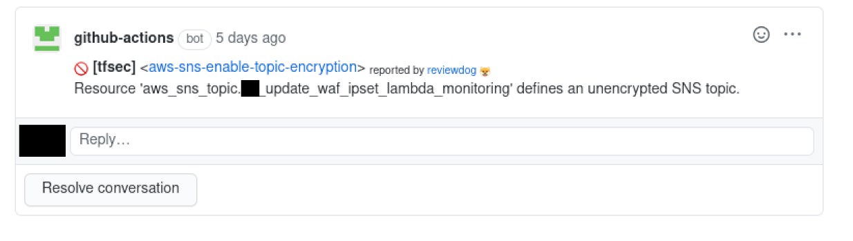 exchange in this issue the links to the solutions do not come up, the idea would be to make a json converter from tfsec to rdjson with jq.