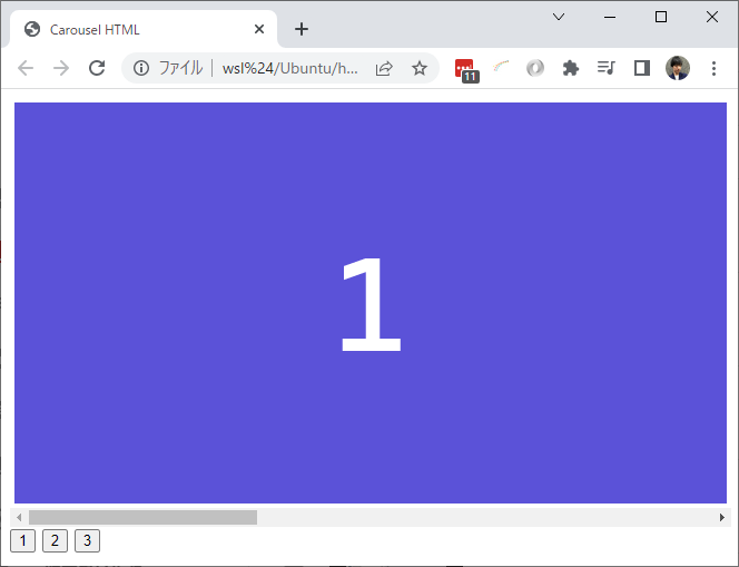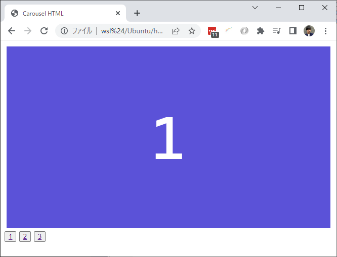 ここからカルーセルをスライドさせるためのボタンを配置しますが、一気に実装してしまうとコードの差分が大きくなって、何がどう作用しているのか分かりづらくなってしまいます。そこでまずは、何も動作しないボタンを配置します。