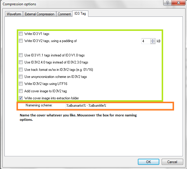-V 0 --vbr-new --add-id3v2 --ignore-tag-errors --ta "%artist%" --tt "%title%" --tg "%genre%" --tl "%albumtitle%" --ty "%year%" --tn "%tracknr%" %source% -o %dest%V2 MP3: