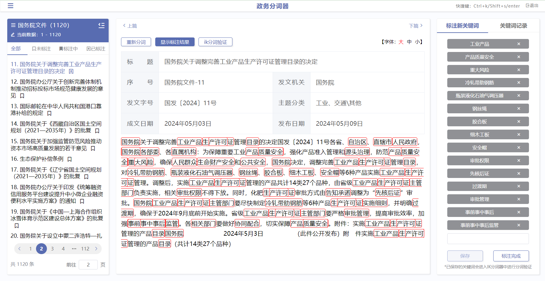 针对数据标注的结果,本项目会定期释放各类、各行业以txt形式存储的经过人工纠偏的标注结果,从而帮助AI和分词器更精准地识别中文词汇里面不断的新生词汇和组合词汇。