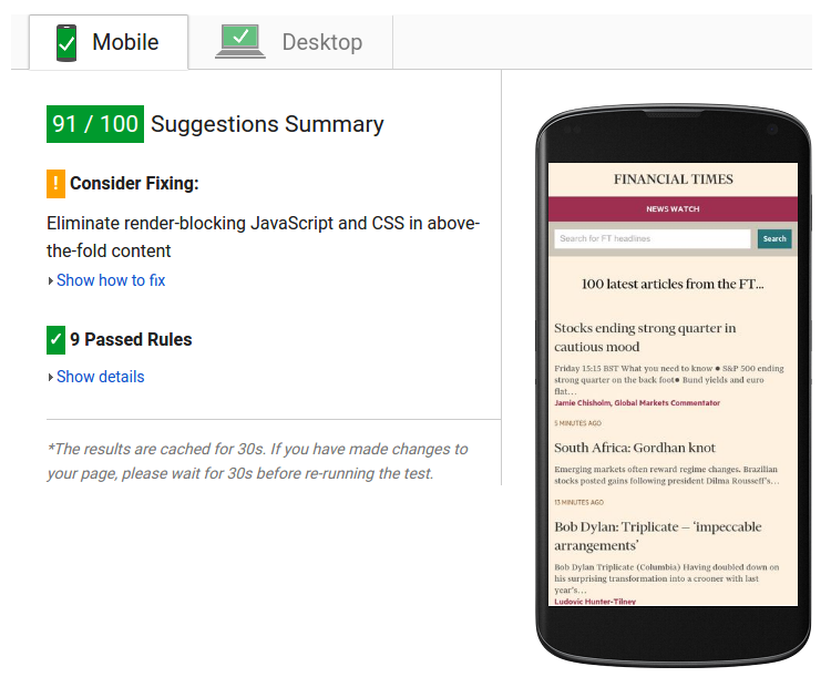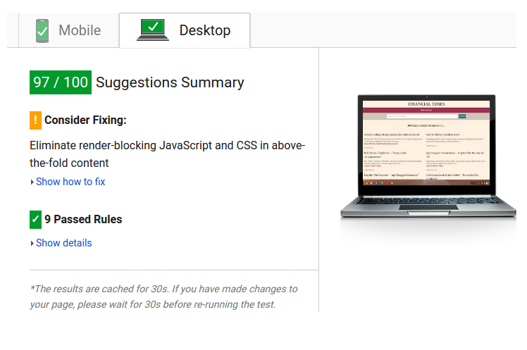 As a result, the site receives the following scores from Google PageSpeed Insights: