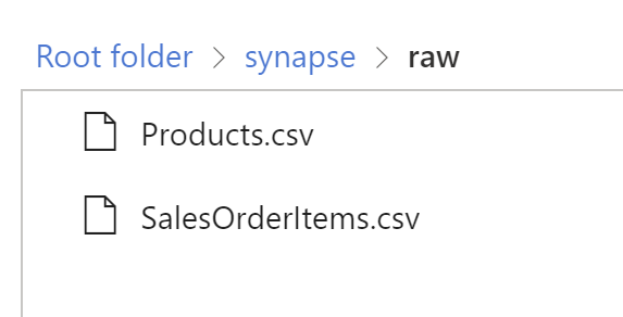 In this example we will use the SAP Bikes Sales sample data. Download the SalesOrderItems.csv and Products.csv and place them inside your own data lake, in a container called synapse and then in a folder called raw. (or change the endpoint inside the integration dataset dl_csv_dataset)