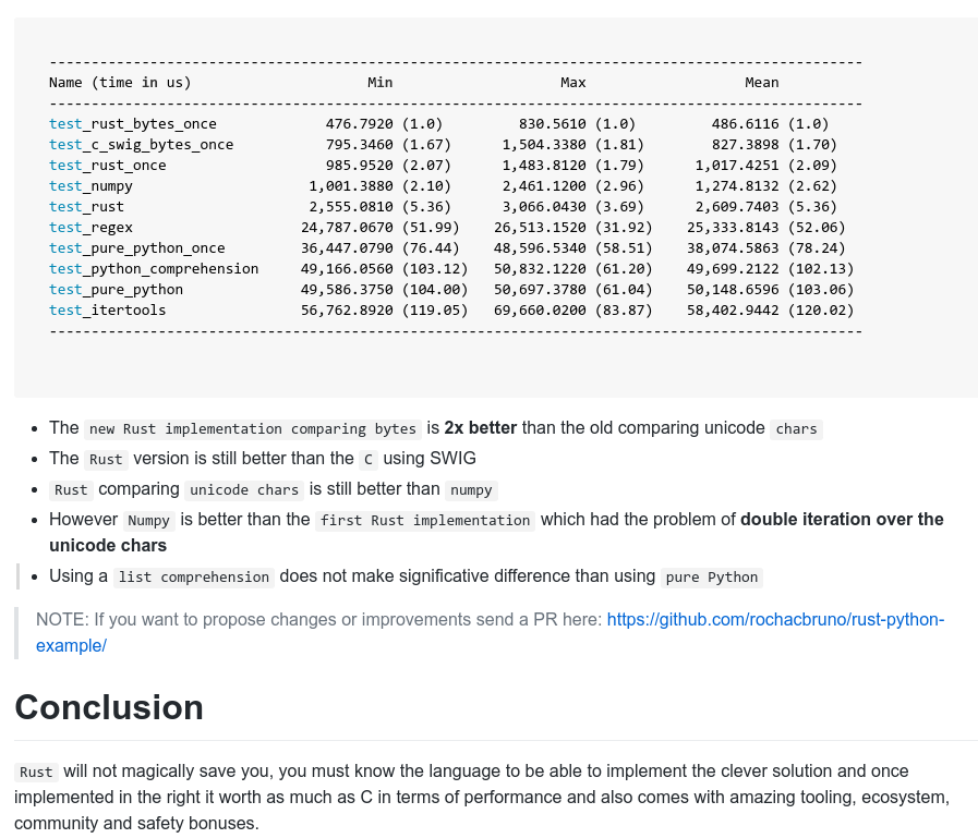 Nice update! By the way, I did not implement bytes because it was faster, but because I had no clue at all how to do this correctly in C. (And I'm not going to try if I can use Rust instead.) |