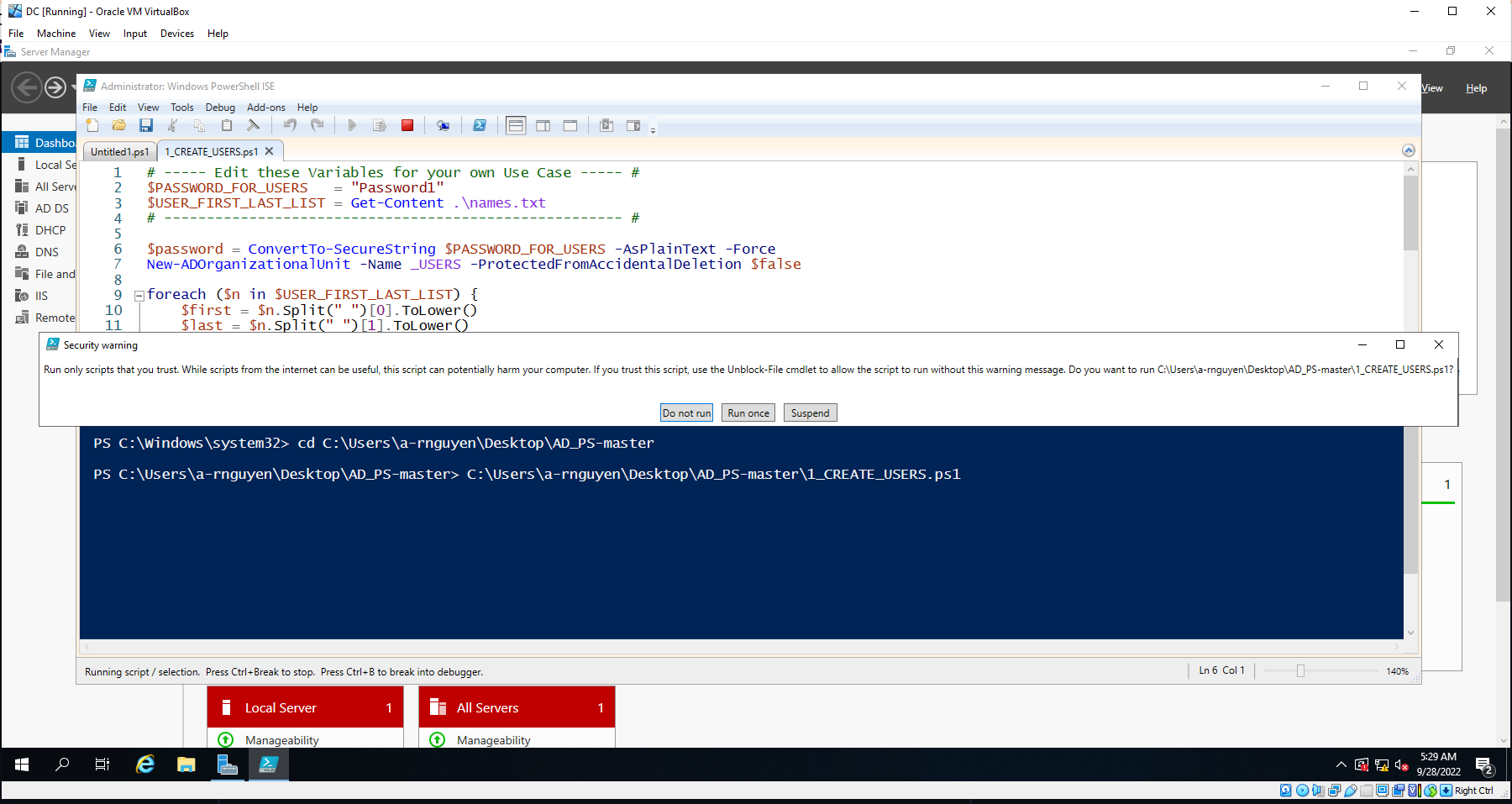 In this project, I used Active Directory and Virtual Machines to enable generated client users to access the internet via domain controller and the virtual private network. I created one Virtual Machine to install Active Directory and to create a domain. Then I setup a NAT/RAS so clients on the private network can access the Internet through the domain controller. Then I setup a DHCP server so new users will automatically be leased an IP address when creating a Windows 10 machine. Then ran a Powershell scipt to create 1000 users in Active Directory. I created another Virtual Machine to install Windows 10, connected this machine to the domain, logged into one of the generated user accounts to test if domain controlled properly leased an IP address so that the clients can access the Internet. This project can simulate a corporate network where new hires are given domain credentials to login into a corporate computer. Another scenario that this lab can be applied is for students that given a unique student ID to login into the school's computer, accessing the private virtual network.