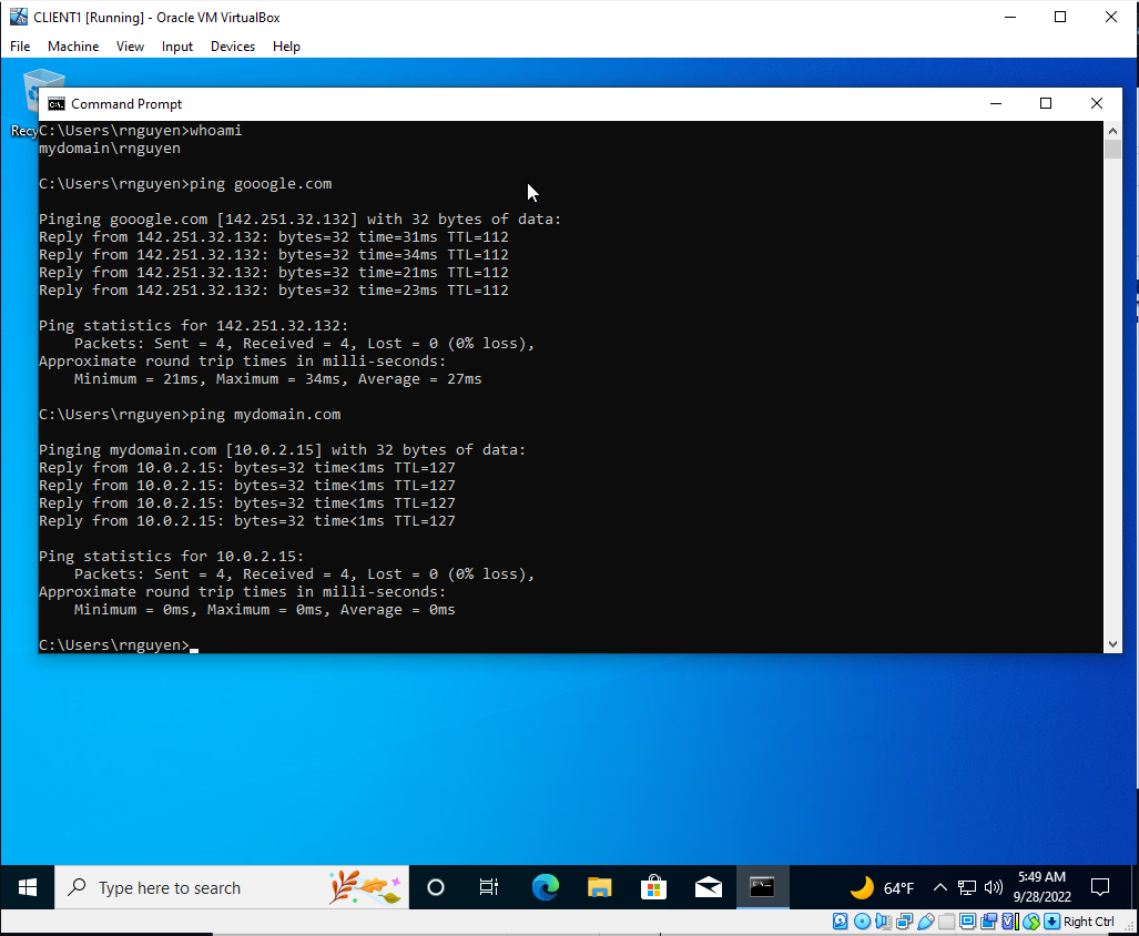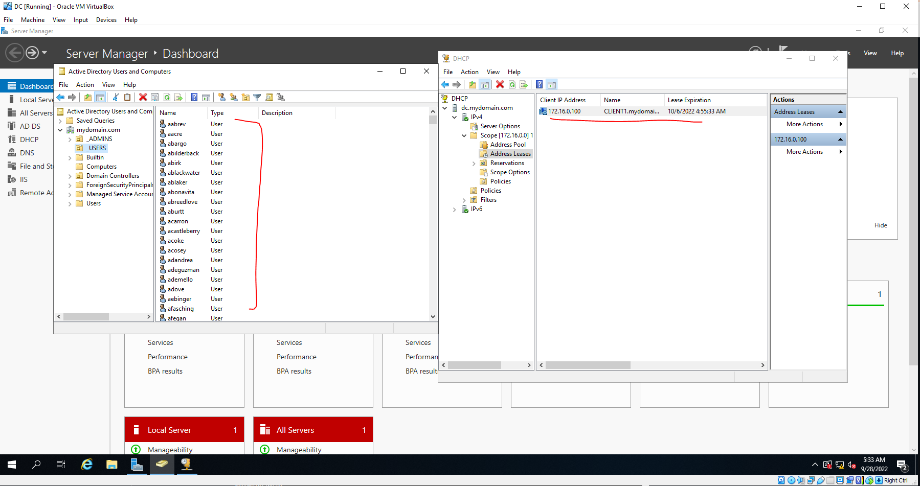Created second VM and gave it admin access, seeing if the domain controller properly leased an IP address