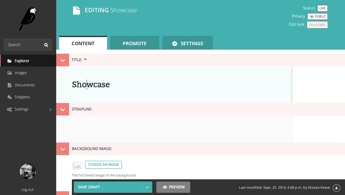 Wagtail is a Django content management system built originally for the Royal College of Art and focused on flexibility and user experience. Its features include: