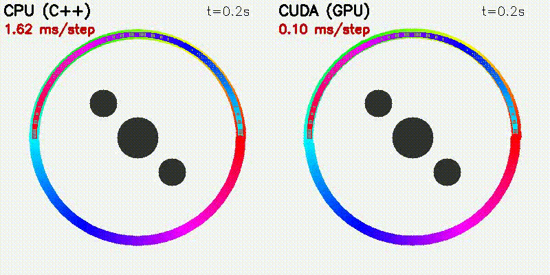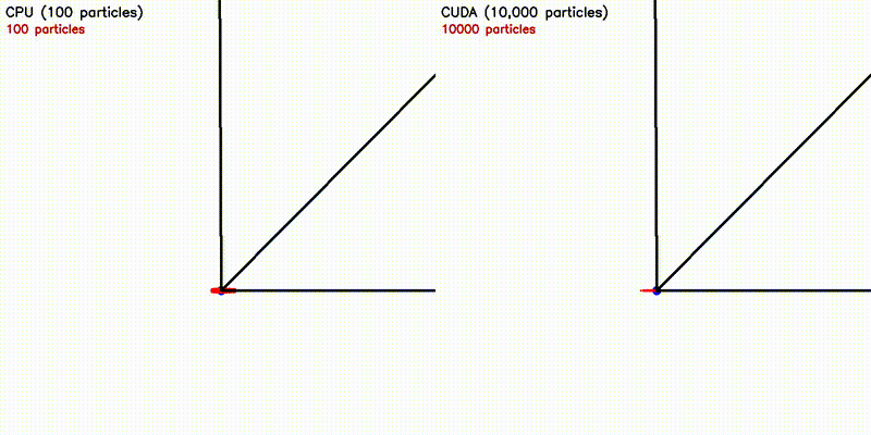 | Particles | CPU | CUDA | Speedup |