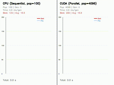 CPU sequential evolution vs GPU population-scale evolution |