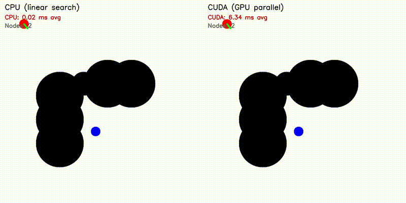 GPU-accelerated nearest neighbor search with shared-memory reduction. Collision checking also runs on GPU.