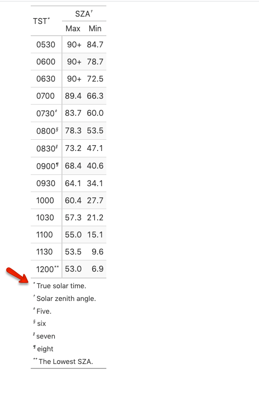 footnote = "The Lowest SZA.",