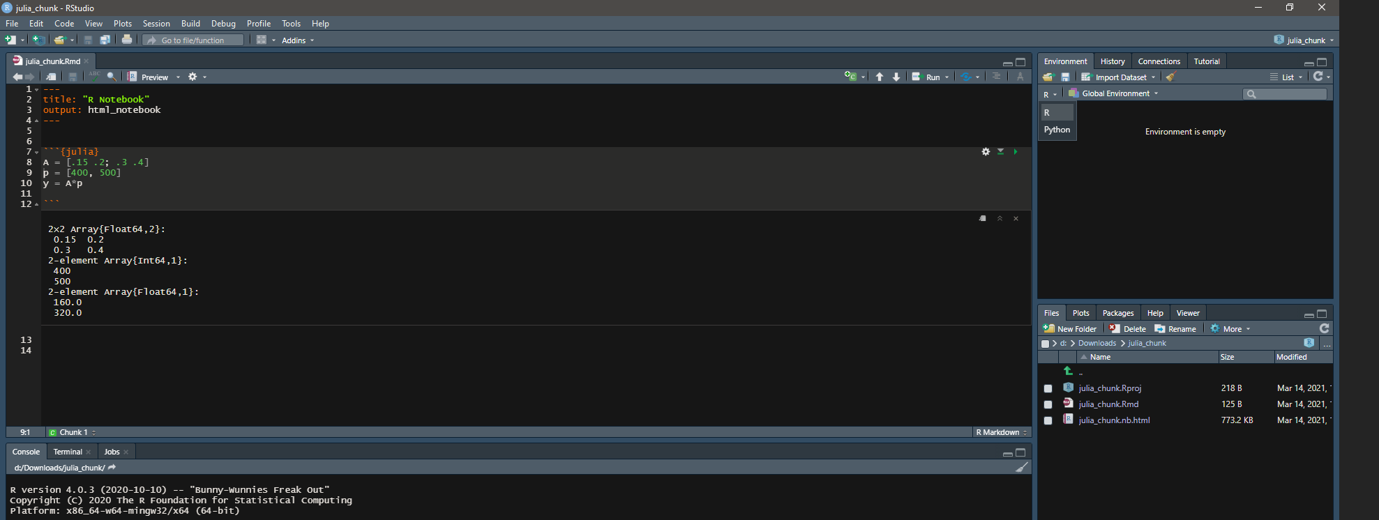 strongly second this. Julia is going to be incredibly important to the numerical computing community in years to come, and already has a vibrant, friendly community. would be great to be able to work in Rmd with seamless exchange between R and Julia, and be able to seamlessly import julia functions into R scripts a la reticulate and python. |