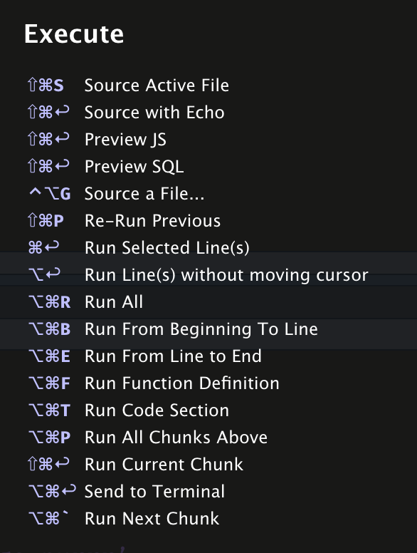 Currently there are some keyboard shortcuts in RStudio which allow us to run code into the console from the beginning of a script to the current line ('command + option + B') or run the entire script ('command + shift + return').