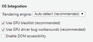I'm not sure if I have the auth to update them, but I can have a look tomorrow. I used RStudio all day today with the OpenGL renderer enabled and found that the blinking dot is not just limited to one document, but exists on the canvas of the editor or something, because it stays in the same place on the screen when I change to a different document, or even when I look at the data viewer. It would be a shame to miss out on using this renderer because I get a big performance improvement with it on larger RMarkdown files. |