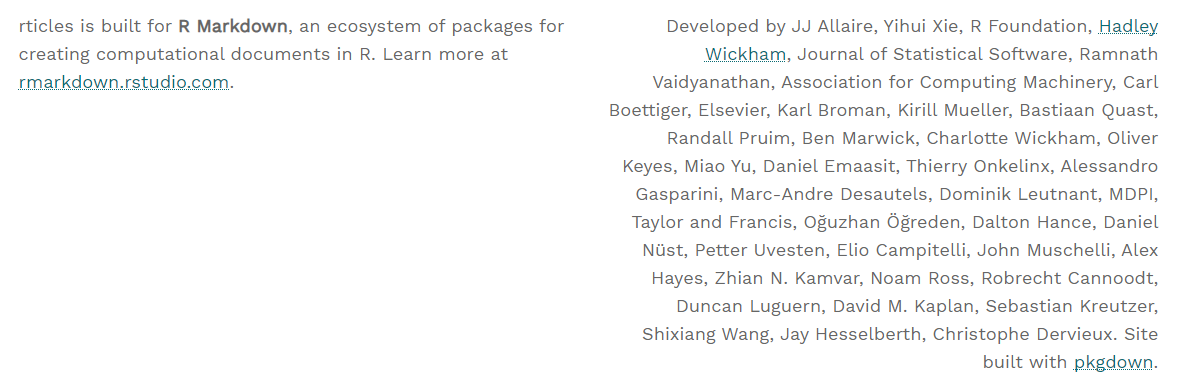This shows also on the right in main page with the number of contributor. https://rticles-pkg.netlify.app/index.html I need to see how we can tweak that in pkgdown maybe -