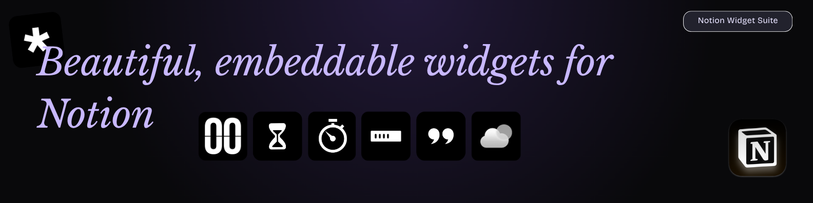 Production-ready, static Notion widgets built with Next.js App Router, TypeScript, and Tailwind CSS. Includes flick-style clock/timer/stopwatch widgets and quote cards that can sync from your Notion database.
