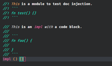 impl () {}This only seems to happen for when the annotated item is an impl, another requirement is that number of lines of doc comments on the impl have to be at least 3 more than the inner doc comments. This also breaks hovering on intra doc links so this seems to be a problem with the source mapping?