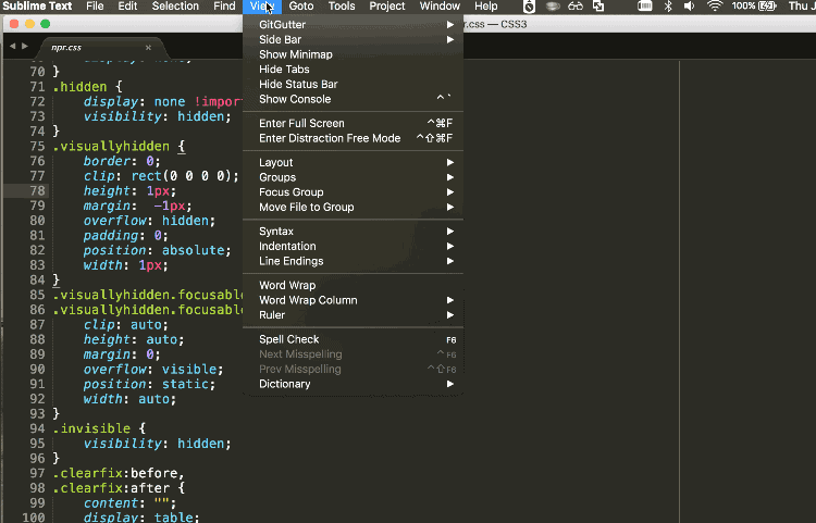 file. - View → Syntax → Open all with current extension as... → CSS3