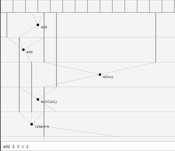 Diagram Syntax label <input[]> > output Examples add 1 3 4 > 5 mul 10 2 > 1 Diagram does not do anything more than display of graph such as calculation.