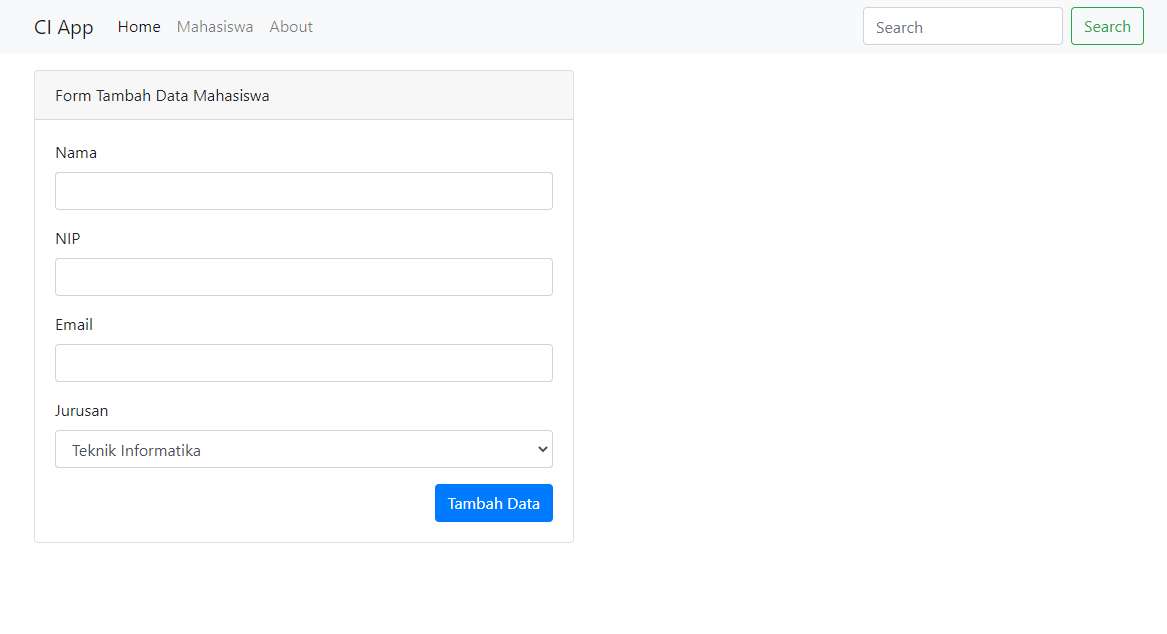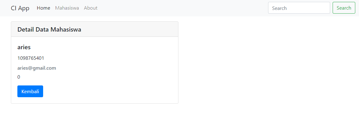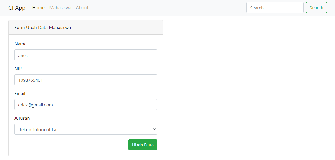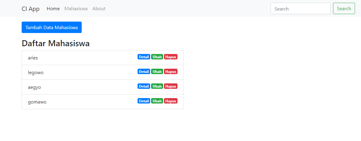 php-crud - Simple Aplikasi dengan Konsep CRUD Simple Vendor: https://codeigniter.com/user_guide/index.html https://getbootstrap.com/docs/4.5/getting-started/introduction/ Support author https://saweria.co/donate/sailingxlt