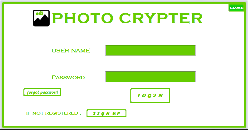 PhotoCrypter A Java application that allows the user to save photos securely and view them privately with password. Screen Shots