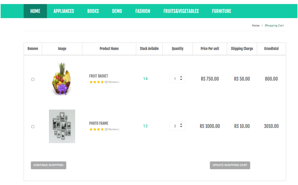 - Create a database names "shopping" 2)Import the file "shopping.sql"