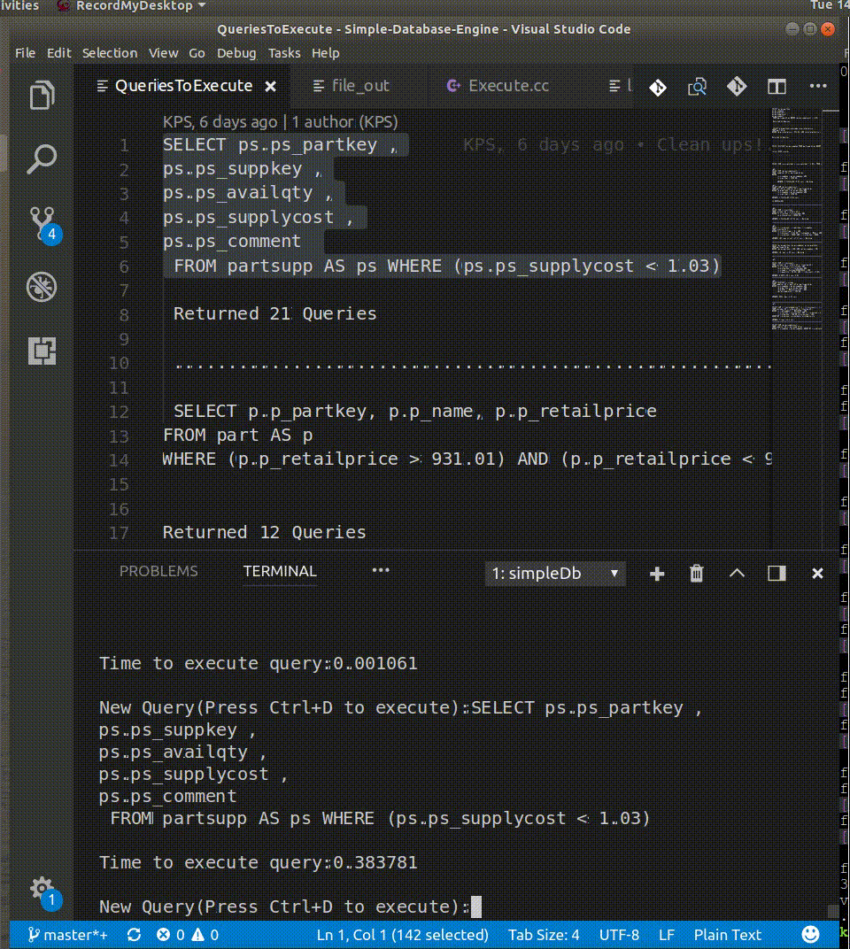 - We planned to implement B+ trees as in any other database engine but were not successful. Any one can use this code and implement B+ trees.