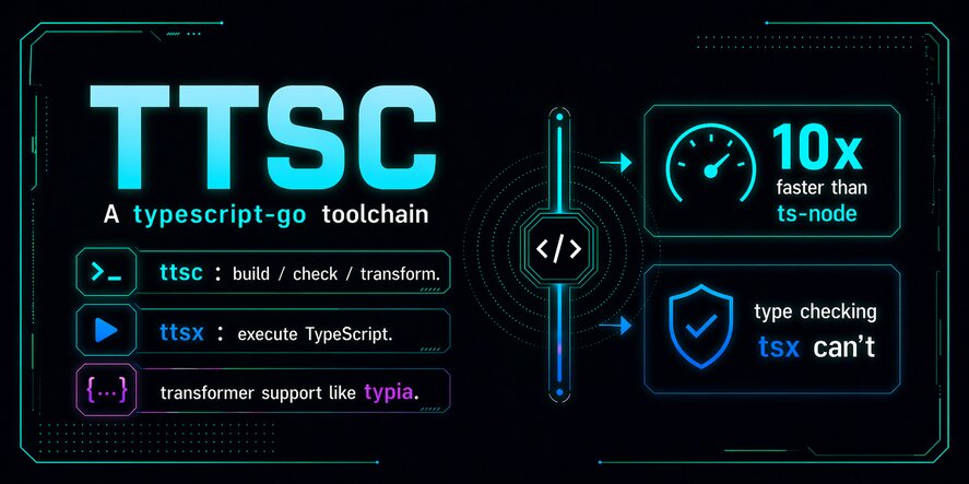 ttsc: build, check, and transform.ttsx: execute TypeScript with type checking.- 10x faster than