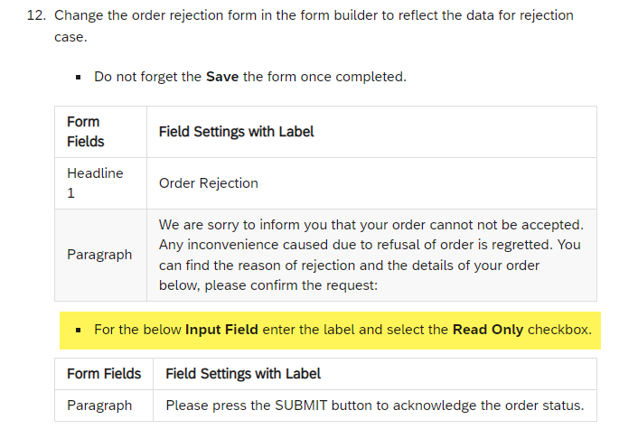I hope the text "For the below Input Field enter the label and select the Read Only checkbox." is not required, as the subsequent form field that was mentioned below is of type Paragraph and it has no Read Only checkbox available.