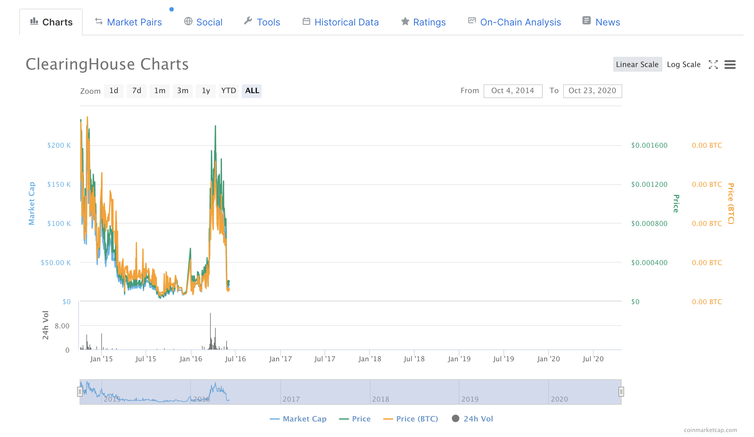 Note that this is a duplicate ticker symbol to 15/XCH/Clearinghouse coin.