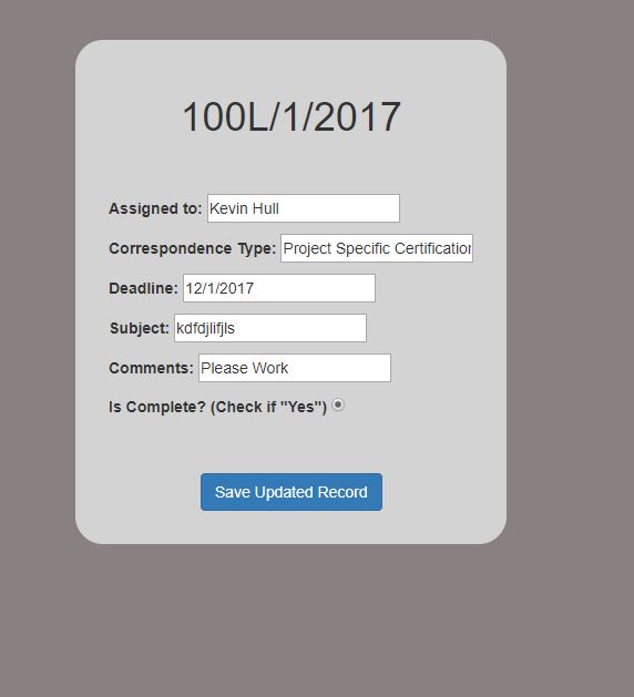"Records": Every Correspondence Type when assigned, given a due date, etc is saved as a Record in the database.