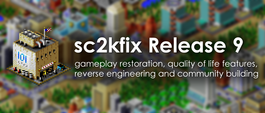In the meantime, please enjoy SimCity 2000 at its most complete with Release 9 of sc2kfix. We hope you have at least twice as much fun playing it as we had putting it all together.