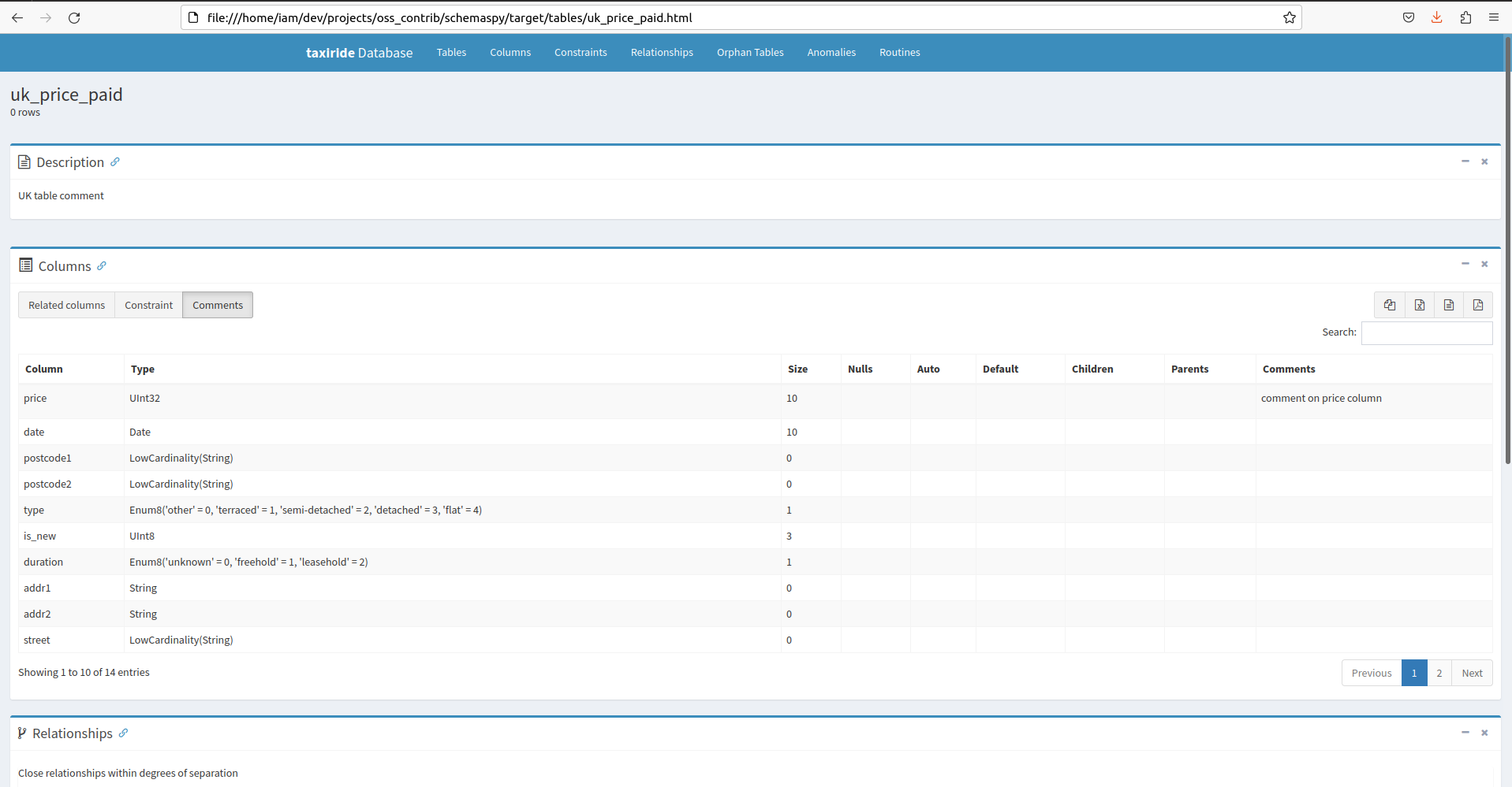 Provide SchemaSpy doc generation support for ClickHouse database via clickhouse-jdbc