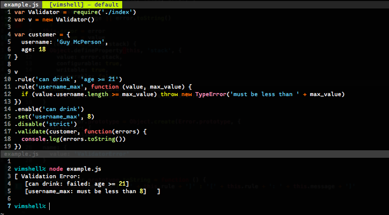 .validate({age: 18}, callback)Validates a value with the rules/settings from settings.