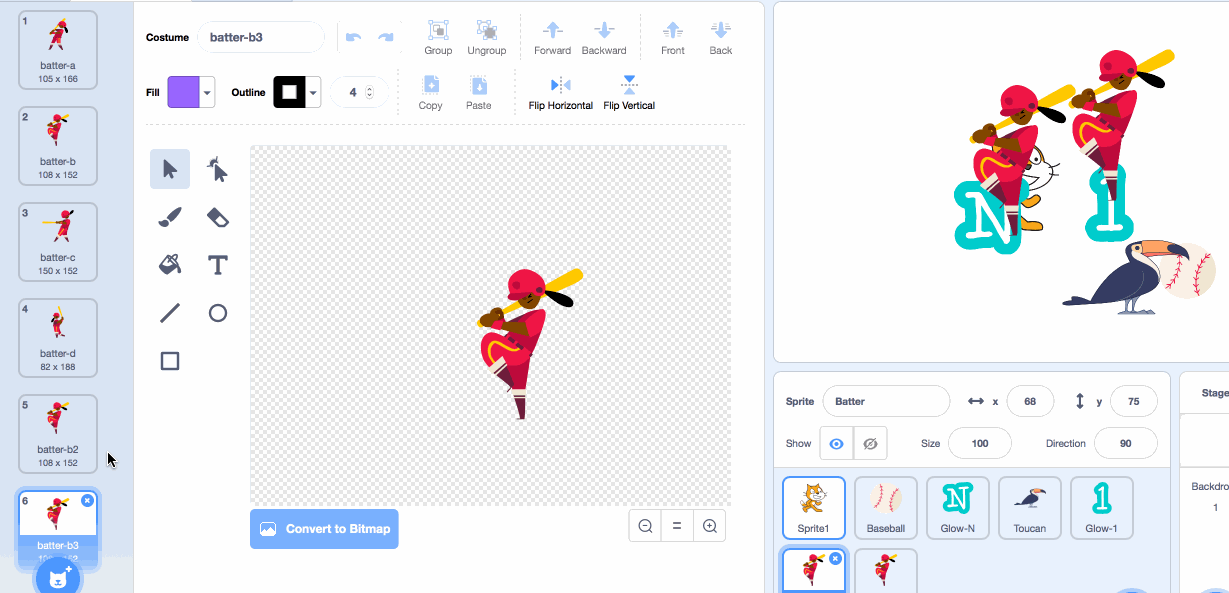 - I can’t drag costumes to other sprites — the sprite lights up like it can receive the costume, but it doesn’t actually receive It looks like that but the actual behavior is that the costume can only be dropped into the currently selected sprite @rschamp