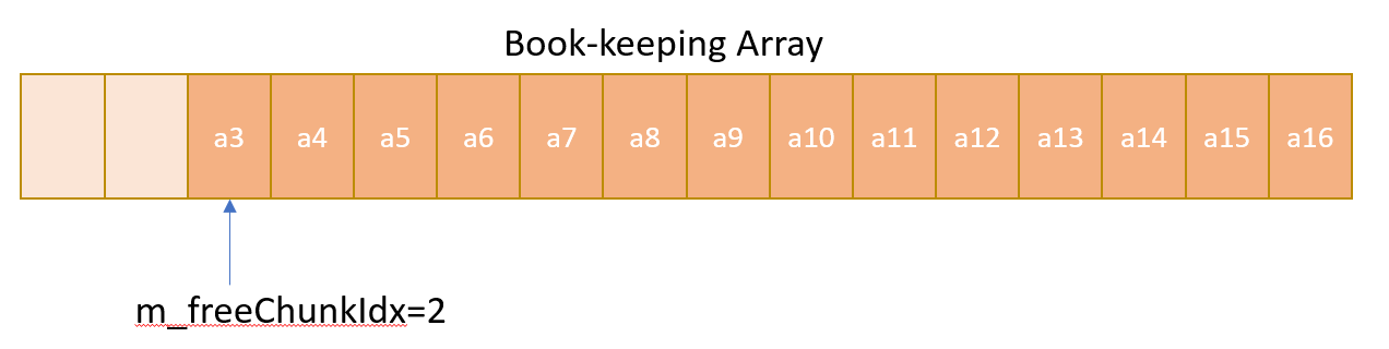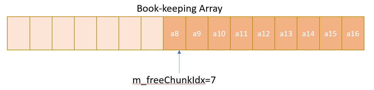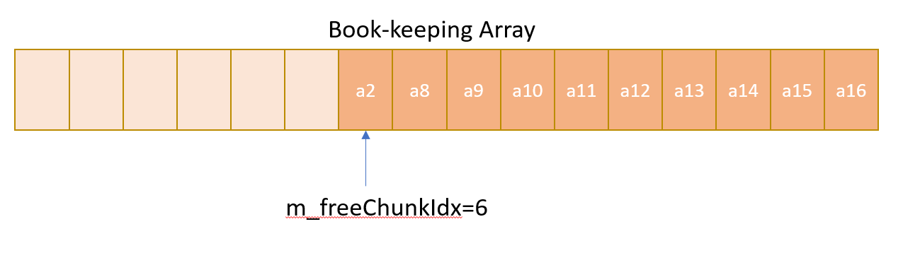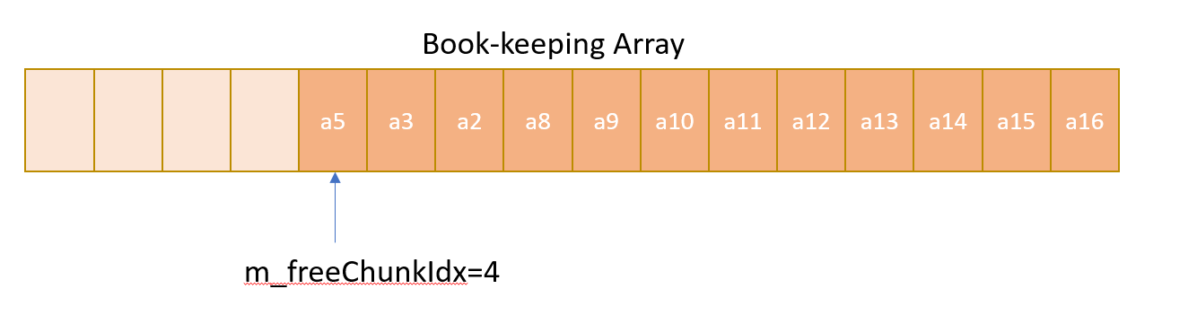 - After several deallocation is requested with mixed addresses being pushed, the book-keeping array may look like the following: