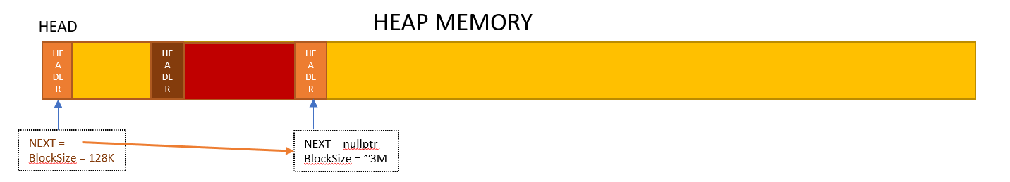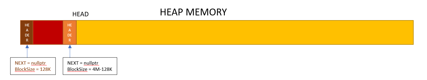 - After the first allocation of 128K memory is done, the memory pool looks like following:
