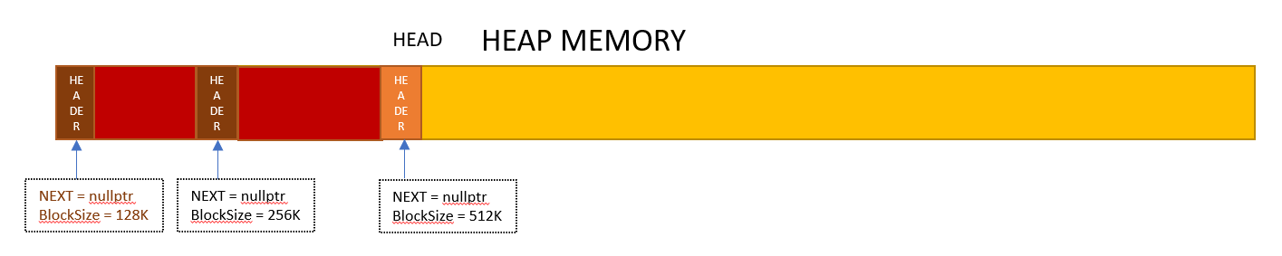 - After second allocation of 256K is done, the memory pool looks like the following: