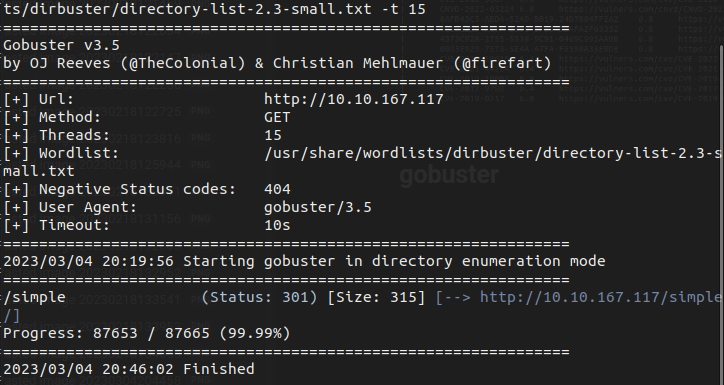 gobuster dir -u http://ip_objetivo -w /usr/share/wordlists/dirbuster/directory-list-2.3-small.txt -t 15