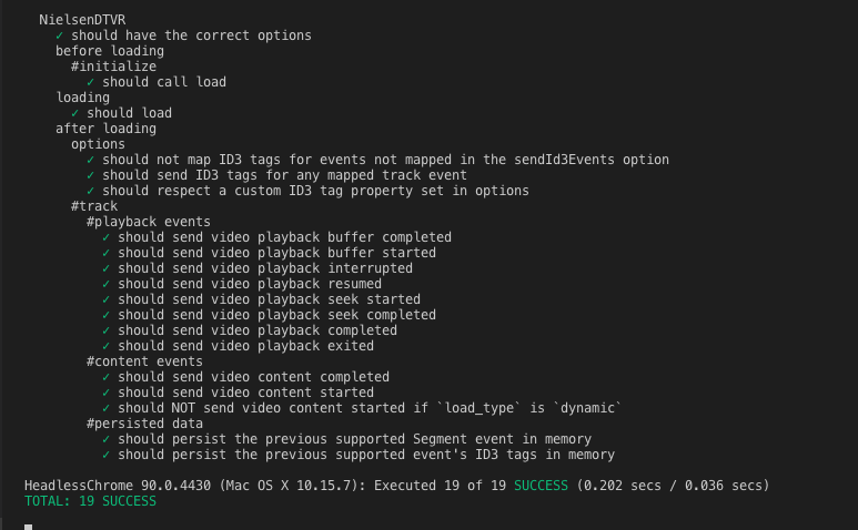 Video Content Completed,Video Playback Completed,Video Playback Exited,Video Playback Interrupted,Video Playback Paused,Video Playback Seek Started, andVideo Playback Buffer Startedforlinearstreams result in no calls to Nielsen as requested. Resuming playback viaVideo Playback Resumedreloads metadata and ID3 tags are picked up for any mapped events.All PRs must follow the process for change control as outlined in: