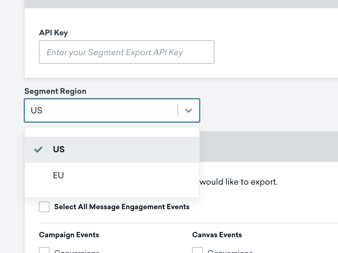 Braze Source now supports EU region. When setting up the Current Connector within the Braze dashboard, the EU region can be selected by using the "Segment Region" dropdown