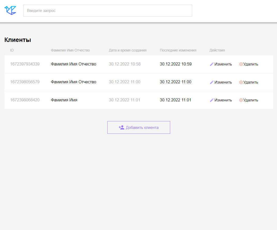 A table with client data from the server, with the ability to change, filter and sort. An option with local storage is possible (when server is not available or when it doesn't needed).