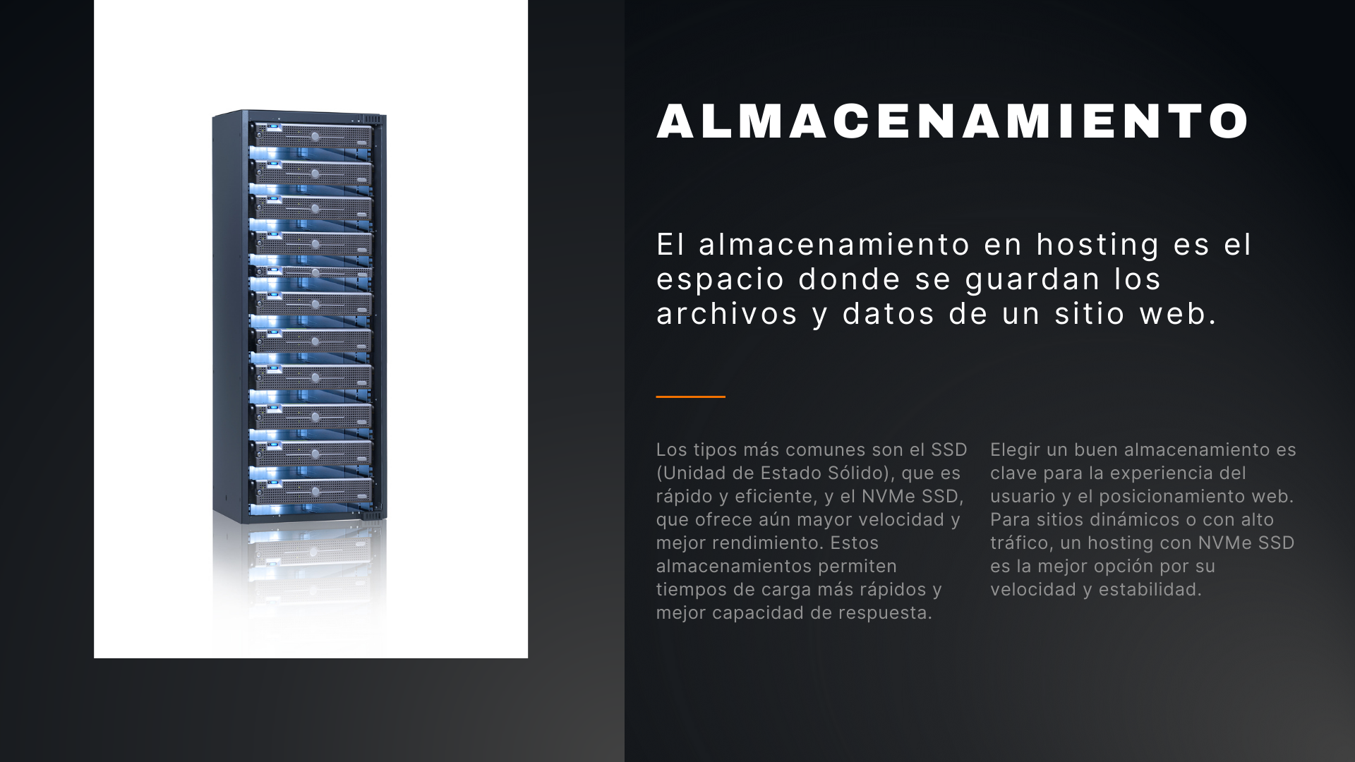 Elegir un buen almacenamiento es clave para la experiencia del usuario y el posicionamiento web. Para sitios dinámicos o con alto tráfico, un hosting con NVMe SSD es la mejor opción por su velocidad y estabilidad.