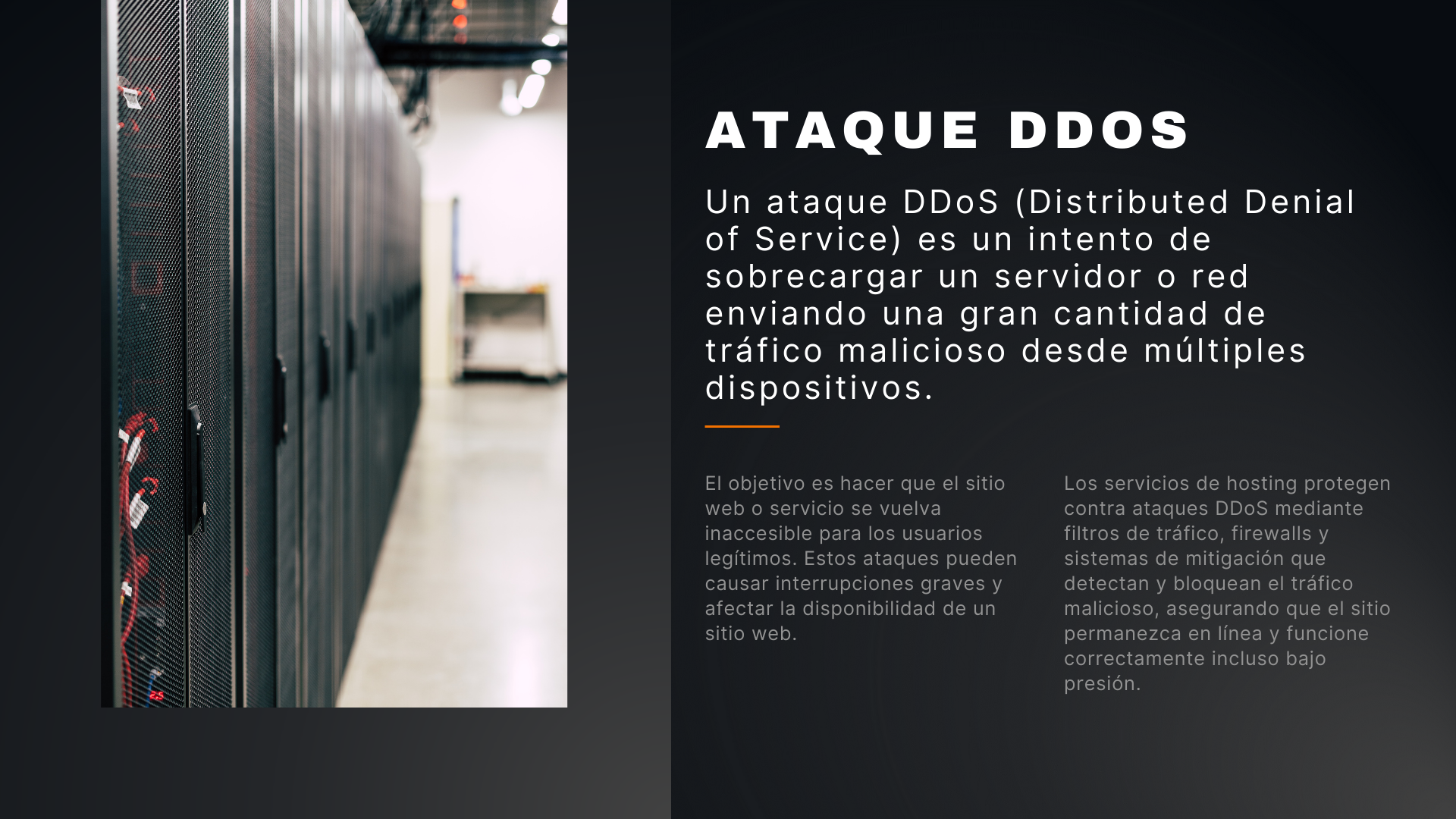 Los servicios de hosting protegen contra ataques DDoS mediante filtros de tráfico, firewalls y sistemas de mitigación que detectan y bloquean el tráfico malicioso, asegurando que el sitio permanezca en línea y funcione correctamente incluso bajo ataque.